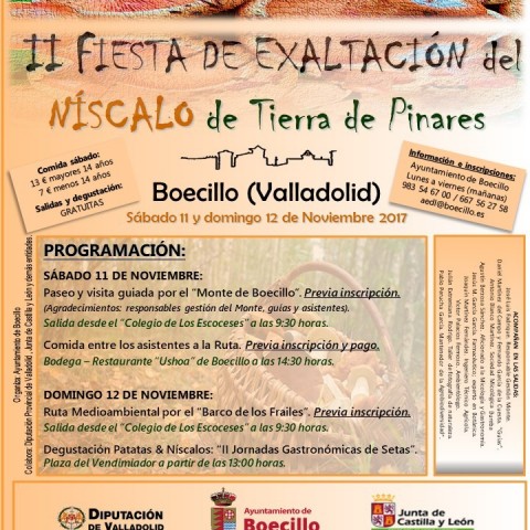 Previa inscripción. Salida desde el “Colegio de Los Escoceses” a las 9:30 horas. Degustación Patatas & Níscalos: “II Jornadas Gastronómicas de Setas”.