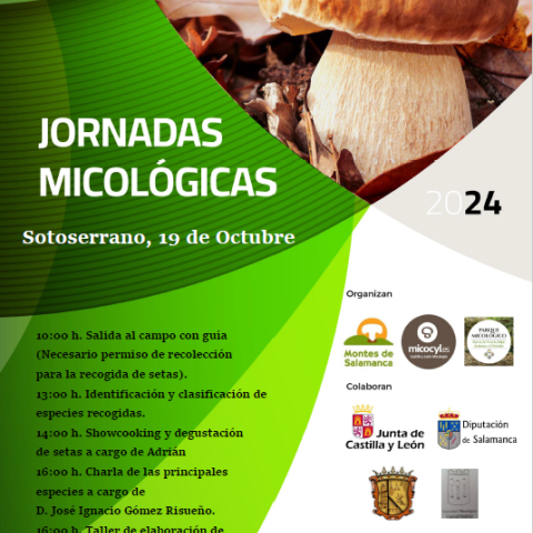 El sábado, 19 de octubre, el programa Micocyl, junto con la Asociación para el Desarrollo Sostenible de los Municipios de las Sierras de Francia, Béjar, Quilamas y El Rebollar, organiza unas Jornadas Micológicas en el municipio salmantino de Sotoserrano, perteneciente al Parque Micológico "Sierras de Francia, Béjar, Quilamas y El Rebollar".