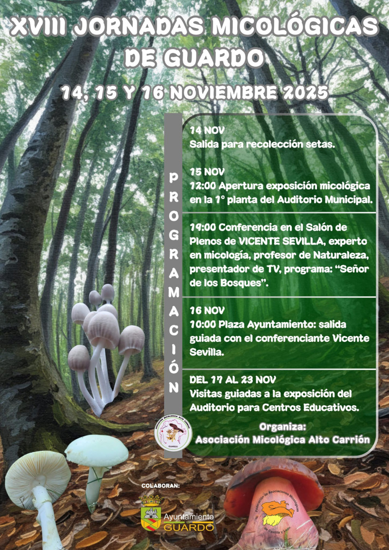 Guardo se prepara para vivir una nueva edición de sus tradicionales Jornadas Micológicas, que este año alcanzan su XVIII edición y se celebrarán los días 14, 15 y 16 de noviembre de 2025.
