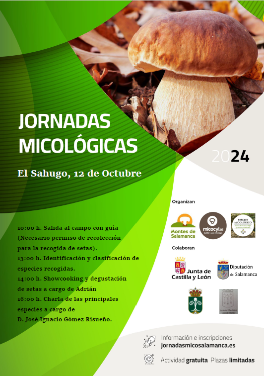 El sábado, 12 de octubre, el programa Micocyl, junto con la Asociación para el Desarrollo Sostenible de los Municipios de las Sierras de Francia, Béjar, Quilamas y El Rebollar, organiza unas Jornadas Micológicas en el municipio salmantino de El Sahugo, perteneciente al Parque Micológico "Sierras de Francia, Béjar, Quilamas y El Rebollar".