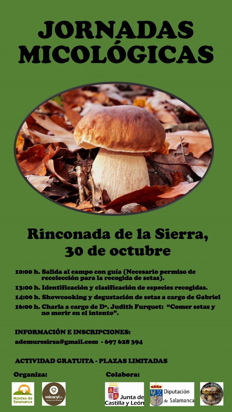 El sábado, 30 de octubre, el programa Micocyl, junto con la Asociación para el Desarrollo Sostenible de los Municipios de las Sierras de Francia, Béjar, Quilamas y El Rebollar, organiza unas Jornadas Micológicas en el municipio salamantino de Rinconada de la Sierra, perteneciente al Parque Micológico "Sierras de Francia, Béjar, Quilamas y El Rebollar".