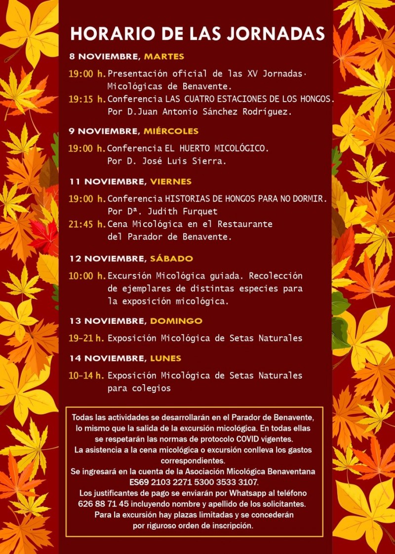 Las XV Jornadas Micológicas de la Asociación Micológica de Benavente se celebran del 8 al 14 de noviembre.