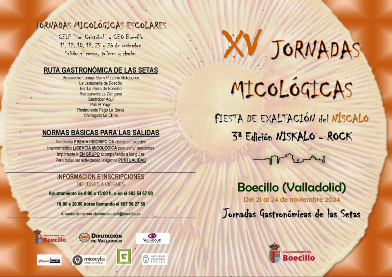 Un año más, Boecillo nos sorprende con sus jornadas micológicas, llenas de actividades pensadas para disfrutar en familia y para todas las edades. Puedes encontrar toda la información detallada en el programa adjunto.