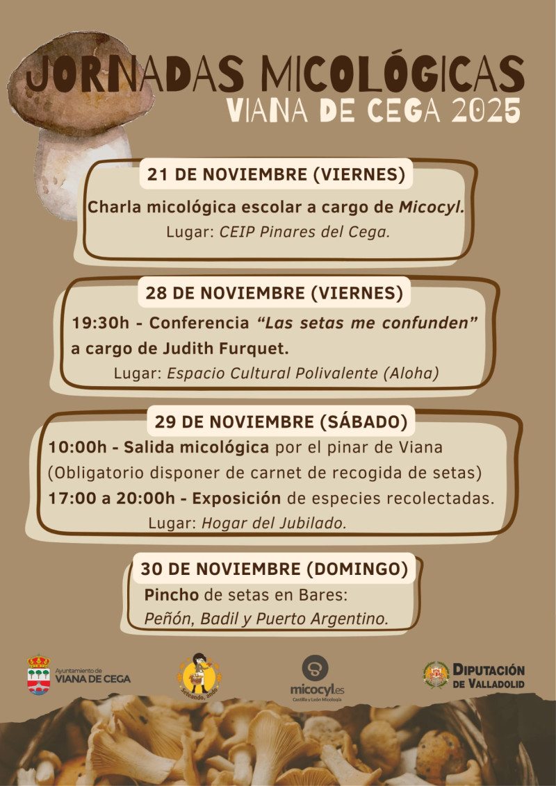 Viana de Cega te invita a disfrutar de sus Jornadas Micológicas, un encuentro dedicado al apasionante mundo de las setas. La programación contará con una charla impartida por Judith Furquet, reconocida divulgadora y experta en micología, seguida de una salida guiada por el monte para identificar diferentes especies en su entorno natural.