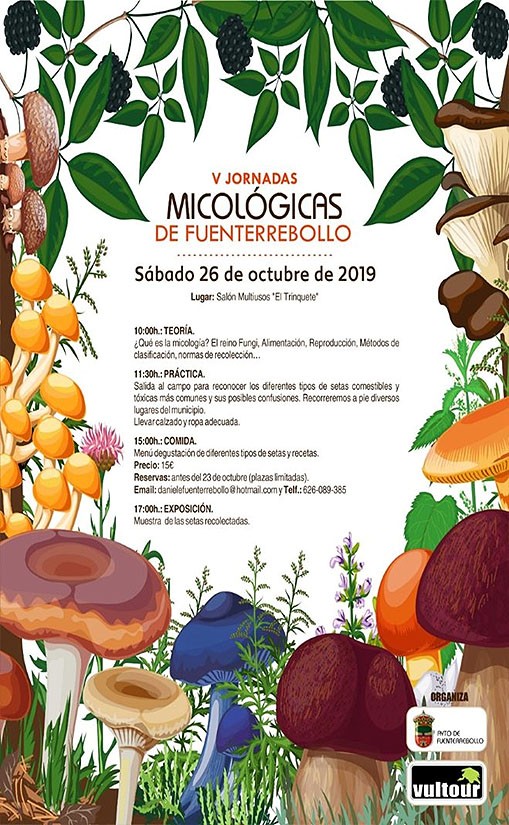 Estas V Jornadas Micológicas que celebra Fuenterrebollo, Segovia, este sábado 26 de octubre proponen un acercamiento teórico al reino Fungi; un recorrido por diversos ecosistemas para conocer sus especies; un menú degustación elaborado con diferentes setas, y una exposición que mostrará los ejemplares recolectados y un análisis pormenorizado de ellos.