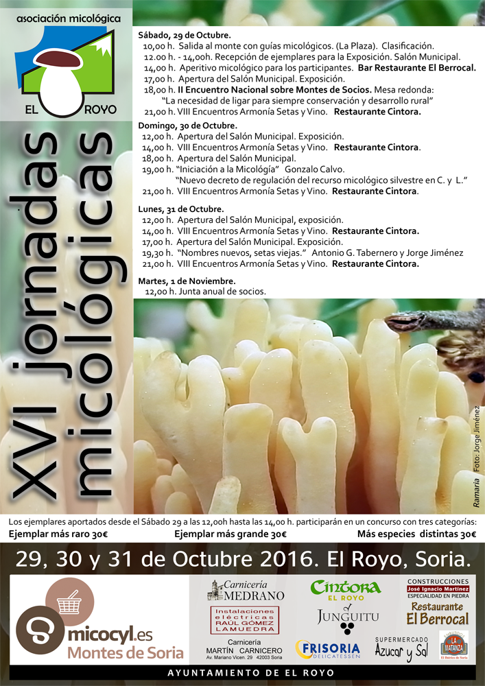 XVI JORNADAS MICOLÓGICAS EL ROYO (SORIA). Del 28 al 31 de octubre de 2016