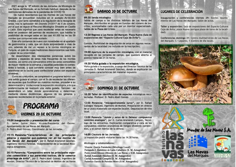 20:15 Ponencia "Comparativa entre las principales especies comestibles y sus parecidos tóxicos de la comarca pinariega de Ávila" .