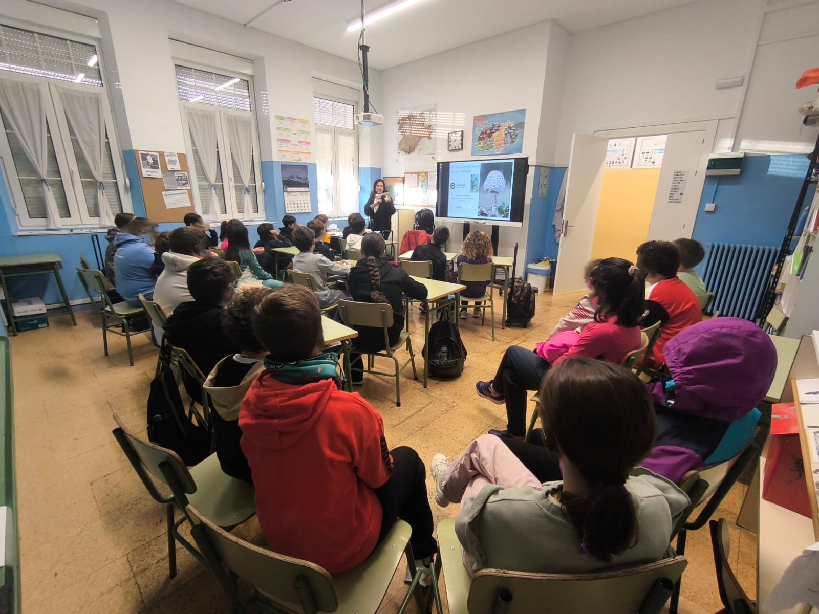 Las primeras sesiones se han desarrollado en el CEIP El Otero de Guardo, donde los alumnos de 2.º, 3.º, 4.º y 5.º de Primaria han mostrado un entusiasmo notable por la micología, planteando preguntas, compartiendo experiencias y demostrando gran interés por el cuidado del monte y el papel de los hongos en los ecosistemas.