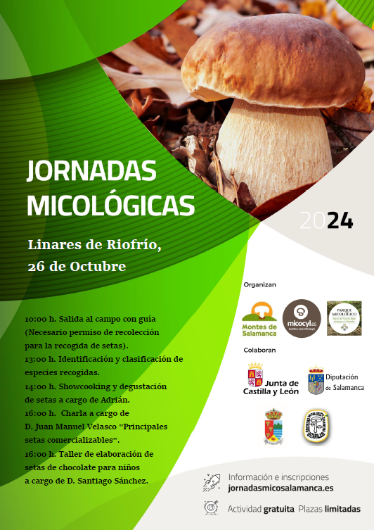 El sábado, 26 de octubre, el programa Micocyl, junto con la Asociación para el Desarrollo Sostenible de los Municipios de las Sierras de Francia, Béjar, Quilamas y El Rebollar, organiza unas Jornadas Micológicas en el municipio salmantino de Linares de Riofrío, perteneciente al Parque Micológico "Sierras de Francia, Béjar, Quilamas y El Rebollar".