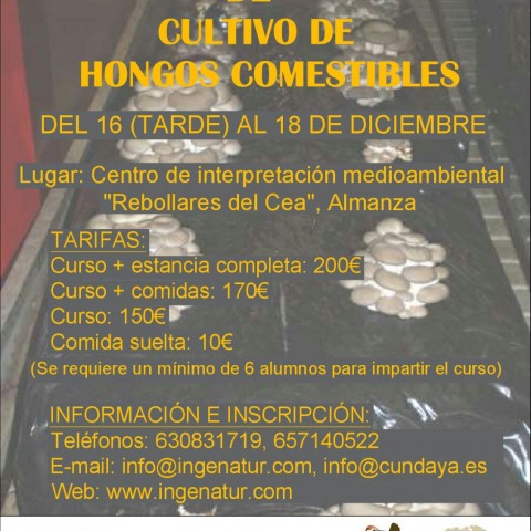 El ayuntamiento leonés de Almanza organiza en colaboración con Ingenatur y el albergue turístico Pico Mediano un Curso intensivo de cultivo e hongos comestibles del viernes 16 (por la tarde) al domingo 18 de diciembre.