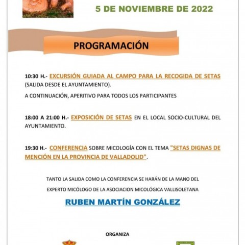El 5 de noviembre en el municipio vallisoletano de La Parrilla se celebrarán las jornadas micológicas con una visita guiada de campo por los pinares del acotado Micocyl, una exposición de setas y una charla muy interesante sobre las setas de la provincia a cargo de Rubén Martín González, experto de la Asociación Vallisoletana de Micología.