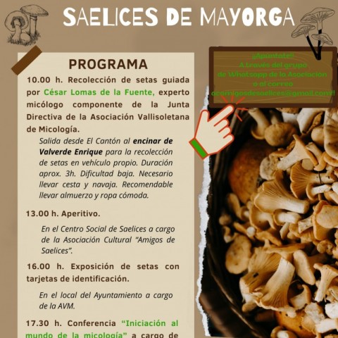 Este domingo 19 de noviembre, la Asociación Vallisoletana de Micología y la Asociación de Amigos de Saelices se unen para ofrecer una experiencia única a los amantes de la micología con unas Jornadas Micológicas llenas de actividades interesantes.