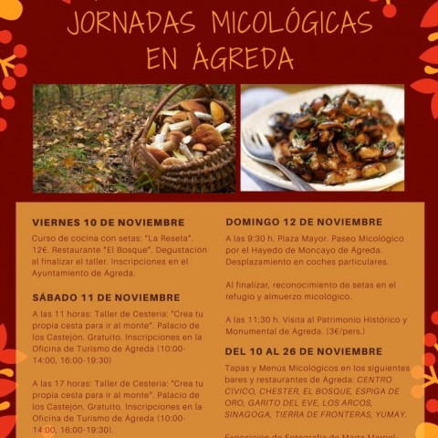 Talleres de cestería, excursiones, tapas, menús micológicos, teatro,... son algunas de las cosas que tienen preparadas el Ayuntamiento de Ágreda para este fin de semana micológico, dentro del programa de las Jornadas Micológicas de Ágreda. Organizadas en colaboración con la UGAM Montes de Soria-Micocyl dentro del acuerdo de promoción de las actividades de divulgación del recurso micológico en zonas reguladas de la provincia de Soria.