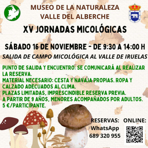 9:30-14:00 Salida Micológica de Campo al Valle Iruelas: Recoleción de muestras. Nociones básicas para la recolección de las setas. Recolección de ejemplares para su identificación y estudio.