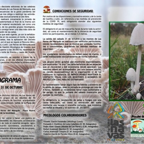 9:30-13:30 Senda Micológica por los habitats de la localidad, distribuido en grupos de un  máximo de 10 personas, acompañados por un monitor especializado. Salida de la Plaza del Cristo