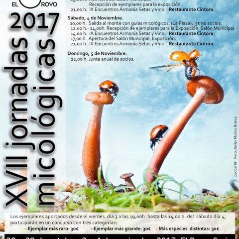 El programa de las XVII jornadas micológicas de El Royo, que se celebrarán los días 28 de octubre, 3 y 4 de noviembre de 2017 es el siguiente: