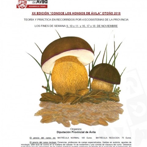 18.30h.- 20.30h Inauguración a cargo del responsable del Área de Desarrollo Rural D. Ángel Jiménez Martín, Presentación y explicación de la mecánica del curso a cargo D. Enrique Fernández Villamor. Técnico Superior de Medio Ambiente de la Diputación Provincial de Ávila “Introducción al Mundo de los Hongos”