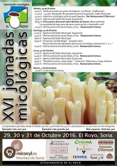 XVI JORNADAS MICOLÓGICAS EL ROYO (SORIA). Del 28 al 31 de octubre de 2016
